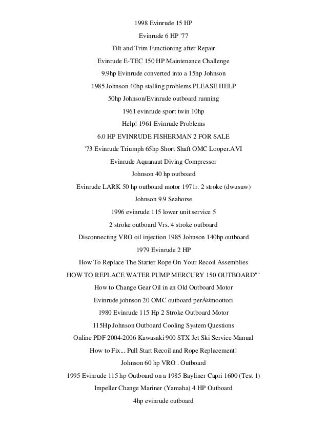 Service Repair Manual Covers: General Information Lubrication, Maintenance & Tune Up Troubleshooting Fuel System Electrical System Engine Repair & Overhaul Lower Unit Manual Starter Electric Motors Supplement: 1976-1978 Service Information Index File Format: PDF Compatible: All Versions of Windows & Mac Language: English Requirements: Adobe PDF Reader NO waiting, Buy from responsible seller and get INSTANT DOWNLOAD, Without wasting your hard-owned money on uncertainty or surprise! All pages are is great to have1976 JOHNSON EVINRUDE OUTBOARD 6.0 HP Service Repair Workshop Manual. Looking for some other Service Repair Manual,please check: Thanks for visiting!